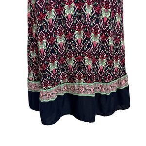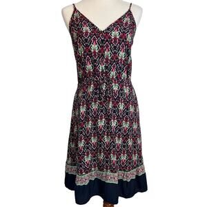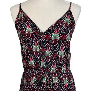 Boho PRETTY GARDEN Floral V Neck Spaghetti Strap Button Down Mini A Line Dress L