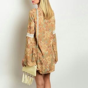 Boho Paisley Floral Bell Sleeve Shift Dress