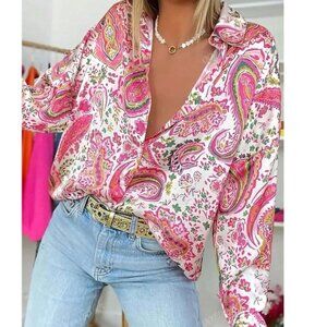 Boho Paisley Print Button Down loose Fit Boyfriend shirt