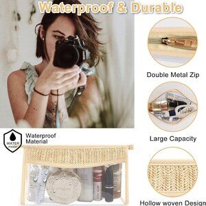 Boho Patch Bag Clear Makeup Letter Bag, Waterproof Zipper Make up Bag Toiletry P