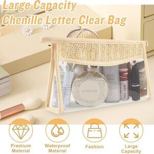 Waterproof & Large Capacity Preppy letter cosmetic bag is waterproof, dust-proof surface and easy to clean, Shiny Chenille letters bring a unique style to your bag. This clear cosmetic bag has enough space to store makeup, snacks, toiletries, travel essentials and other daily necessities.