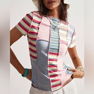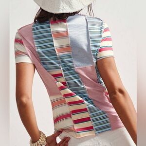 Boho Patchwork Multi Striped Drop Shoulder Fitted Stretch Jean Plus 2X New Top