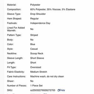 Stylish Bohemela blue striped top with drop shoulder design. Features a scoop neck and short sleeves. Perfect for casual wear.
