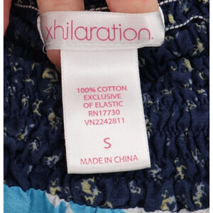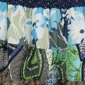 Charming boho-style patchwork skirt by Xhilaration featuring a smocked elastic waistband and tiered silhouette. Made from lightweight 100% cotton with floral and abstract mixed prints in shades of navy, green, blue, and olive. Comfortable, flowy, and easy to style year-round.)