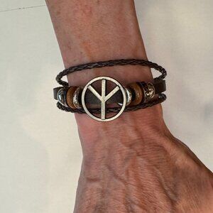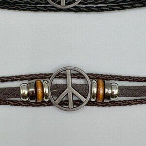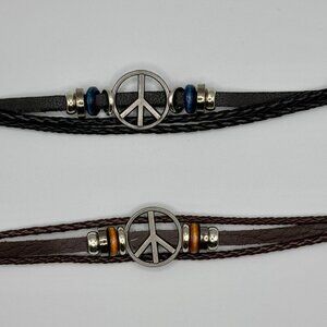 Also available in brown faux leather / brown beads / antique silver peace sign in separate listing