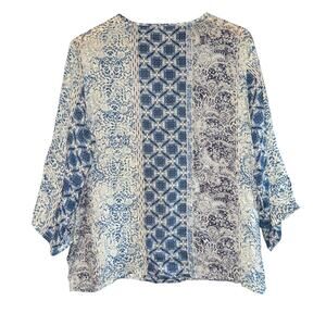 Boho Peasant Top Dressbarn Women's 1X Hippie Mixed Pattern 3/4 Sleeve Festival