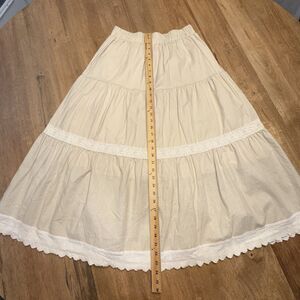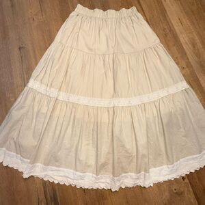 Boho Prairie Maxi Skirt XL Cream Tiered Lace Detail Cottagecore Boho Cotton