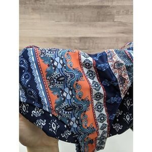 High-waisted fit, Strappy at bottom sides, Regular Wash, Fabric: 80% chinlon, 20% spandex. Blue, Orange, White and such a fun overall print!