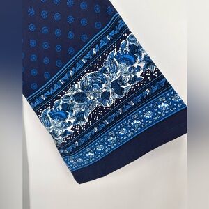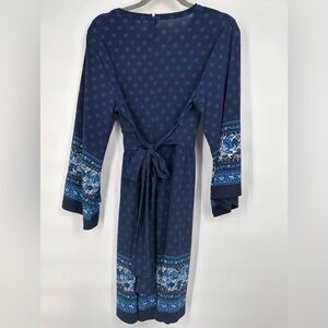 Boho blues and white Print MICHAEL Michael Kors Tie Back Dress. V neck. Three quarter length sleeves. Super comfortable and easy to wear. Size Small. Happy to give measurements upon request!