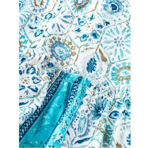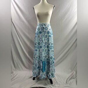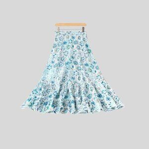 Boho Printed Maxi Skirt With Umbrella Hem Blue