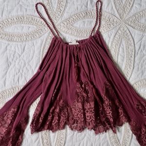 Boho dusty purpled crop top. Spaghetti straps with bell sleeves. So cute on! Fits like an XS!