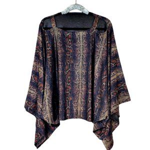 Boho Python Tunic Flowy Batwing Top with Open Sleeves & Swrk. Crystals.