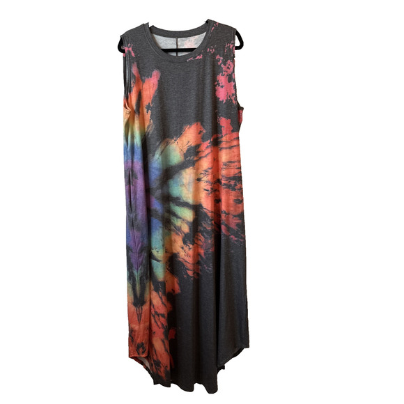 Boho Rainbow Tie Dye Maxi Asymmetric Dress Women's Plus 2XL Cozy Lounge Beach