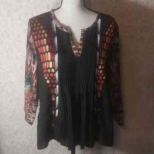 Boho Ranna Gill Embroidered Tunic Blouse Size L Preowned Boho Bohemian Embroidered Pleated 26 Whimsigoth Witchy Goth Dark Academia Fairiecore Gothic Dark Cottagecore Dark Romantic Preowned