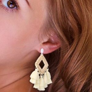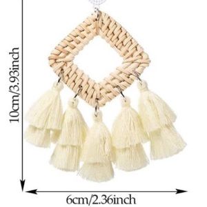 LAST PAIR!! SUPER CUTE!! Take your outfit from drab to fab with this awesome pair of handmade earrings! They are a neutral rattan with a post making them secure while wearing. They are lightweight and comfortable so they can be worn all day. They also have the fun and VERY trendy tassels! You’ll get a ton of compliments on this pair of earrings! They would look great with any pair of jeans and a T-shirt or your favorite sundress! Stored in a smoke free environment.