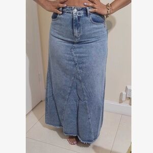 Boho Raw hem Jean Denim Pockets Maxi Skirt