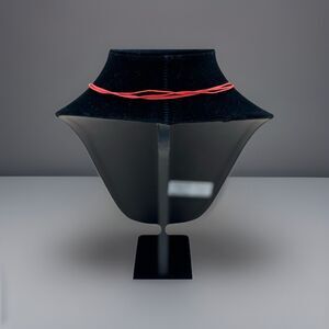 This boho necklace features a vibrant red braided cord accented with round white-blue beads that are cool to the touch and a small coin-style pendant. Lightweight and versatile, its perfect for layering with other jewelry or wearing as a simple lucky charm piece.