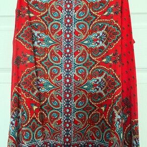 Stand out in this vibrant red bohemian tank top featuring a stunning paisley and geometric print in shades of turquoise, gold, and navy. Lightweight and breezy, it’s perfect for summer days, vacations, concerts, or layering under a jean jacket for effortless boho style.