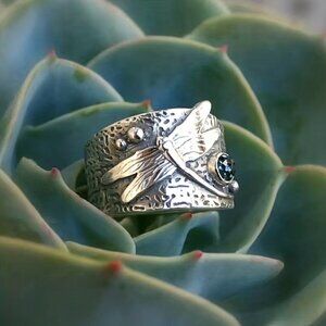 Boho ring in silver tone #754 Everyone loves the dragonflies this year! A solid and well-made design. Perfect for stacking, mixing and matching. Just the right size to have personality without being overwhelming or masculine! I wear mine frequently and get lots of compliments. Even though I'm rough on my hands (we have dogs and horses), it has worn beautifully. Note about the material: This ring is NOT 925 sterling. The manufacturer tells me that it is a stainless steel and zinc alloy that is designed to be durable and resist tarnish. If you have any questions, or if you'd like additional pictures or measurements, just let me know. Thanks for checking out my Poshmark boutique!