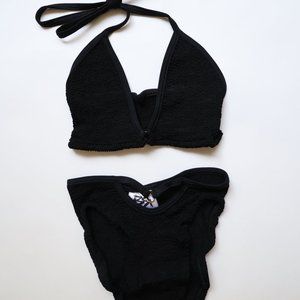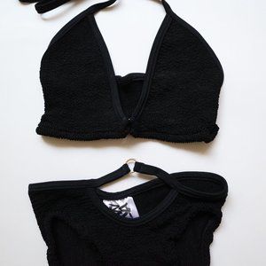 Boho Rose Black Two Piece Bikini with Gold Ring Accents - Size M or L