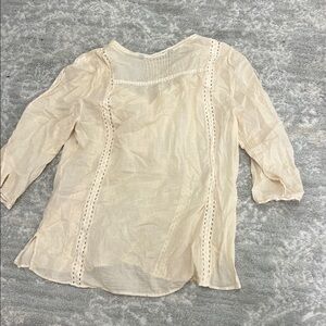Zara boho , peach/beige ruffle V neck blouse. Three-quarter/half sleeves. Size small