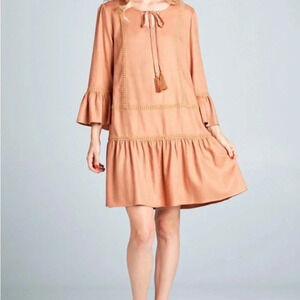 Boho Ruffle Hem Dress Tassel Fringe Front Detail