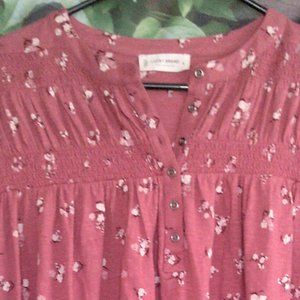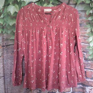 Boho Salmon Floral 1/4 Button Down Top