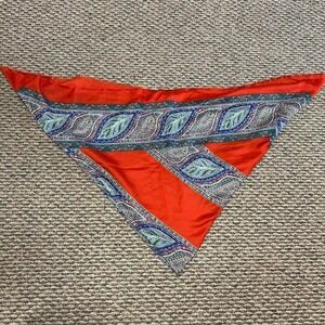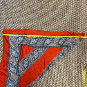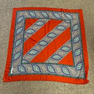silk scarf, paisley print, orange green, vibrant, patterned accessory, lightweight fabric, boho style, luxurious, 42 inch square, statement piece, #vintage #1970s #70s #boho #hippie indie, bohemian