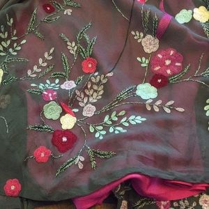 Boho sexy dress. Hangs very well and it is a fitted style. Great intricate details. Greyish-purple Sheer over hot pink lining.
