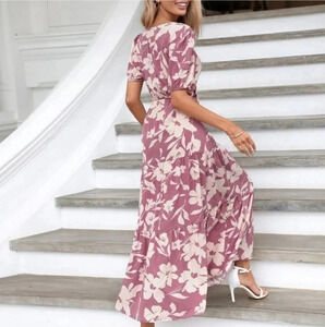 Boho Shabby Chic Floral Print Twist Front Cut Out Ruffle Hem Dress