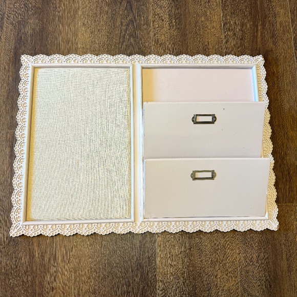 Boho Shabby Chic Light Pink Detailed Engraved Wood PinBoard and Mail Holder