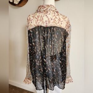 Boho Sheer Blouse Floral Feminine Plus Size Fourth of July Office Summer Floral