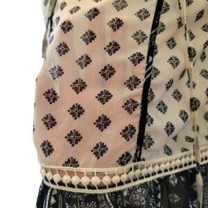 Boho Sheer Blouse Womens Size Small Black White Print Flowy Long Sleeve JJ3488