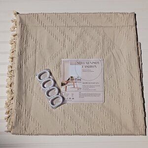 Boho Shower Curtain 72 x 85 Cream Tufted Chenille Chevron Hardware Farmhouse NEW