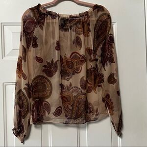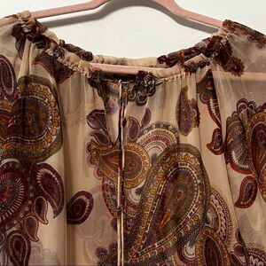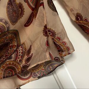 Boho Silk Chiffon Y2K ECI Paisley Popover Peasant split Neck Semi Sheer Top S