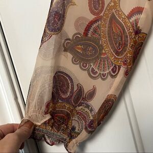 Vintage Boho Silk cottagecore Semi Sheer Feminine ECI New York 100% Silk Chiffon sheer Dusty Rose Pink Brown Blue Beige Yellow Purple Paisley Relaxed Popover Peasant blouse