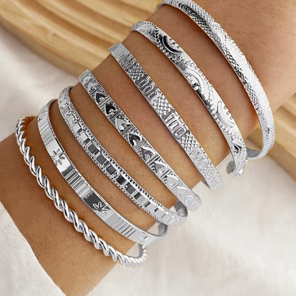 Enhance your style with this elegant silver bangle set. Perfect for any occasion, these bangles add a touch of sophistication to your look.