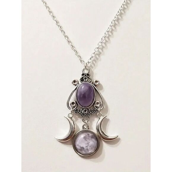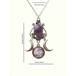 1pc Unique And Creative Bohemian Style Silvertone Moon Goddess Necklace And Simulated Amethyst Pendant Necklace Are Perfect For Women's Gifts