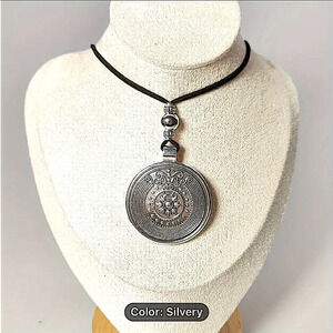 Boho round pendant silver leather code necklace. Can be customized to any size.