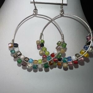 Boho Silver Tone Gemstone Chakra Dangle Hoop Earrings