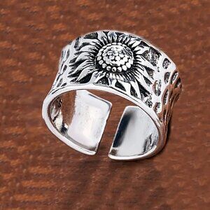 Boho Silver Tone Sunflower Adjustable Band Ring #1334
