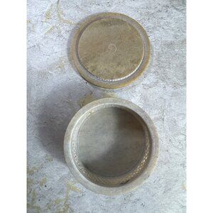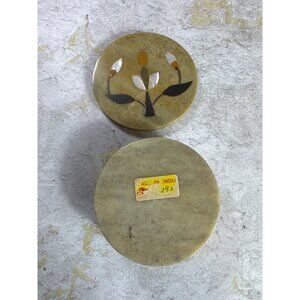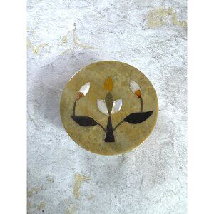 Boho Soapstone Trinket Box with Lid Mother of Pearl Inlay Beige Tan