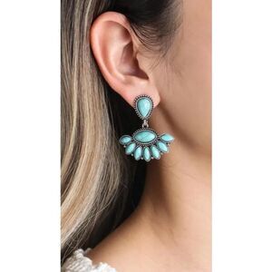 Boho Southwestern Faux Turquoise Chunky Fan Teardrop Stud Dangle Earrings