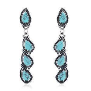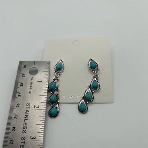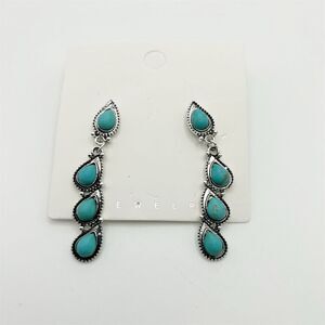 Boho Southwestern Faux Turquoise Teardrop Stud Dangle Long Earrings