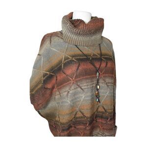 Boho Southwestern Knit Poncho Earthy Sz L Oversized