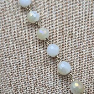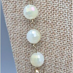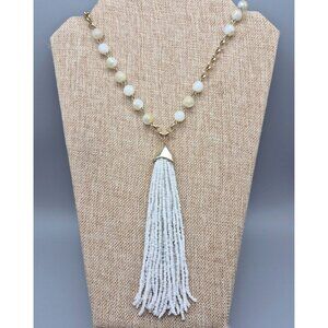 Boho Statement Necklace White Tassel AB Wash Beads Gold Tone Chain Asymmetrical