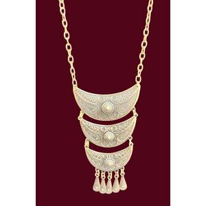 Boho Statement Necklace With Tiered Crescent Design & Dangling Charms