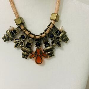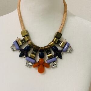 Boho Statement Rhinestone Bronze Necklace Orange Blue Purple