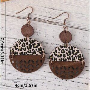 Boho Statement Wooden Earrings With Leopard Print & Cutout Design NEW