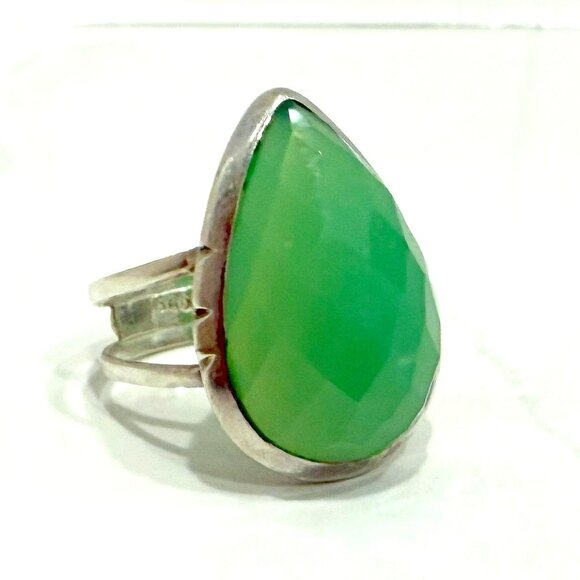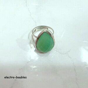 Boho Sterling Aqua Chalcedony TearDrop Ring Sz 7.75 Ladies